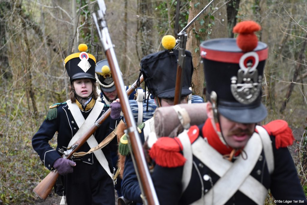 Et puis, le moment est venu : nous partons sur des charrettes, chercher l’Autrichien et le Wurtembergeois. C’est au milieu de nulle part que nous les apercevons, au détour d’un chemin dans les bois. Le sol est détrempé, nous glissons sur ce chemin pentu. Le caporal l’Horloge, nommé sergent suite aux récentes pertes, ne cesse de nous motiver et notre blanchisseuse, toujours présente près de nous, nous apporte de l’eau bienfaitrice.